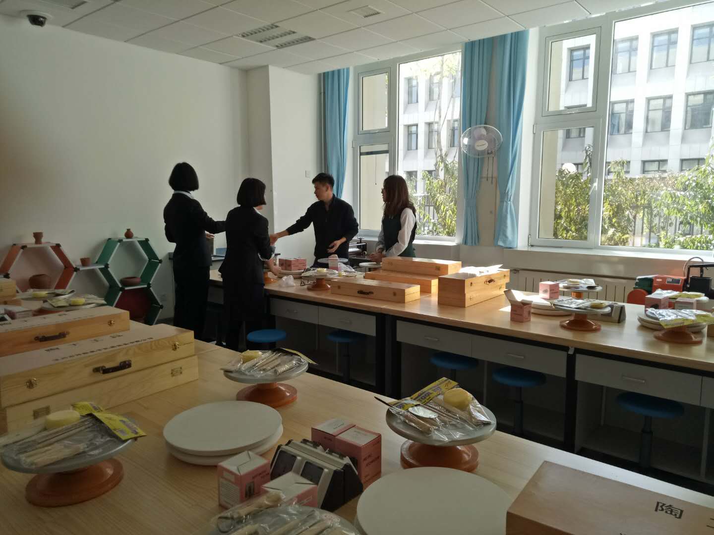 10月23日河北偉聯(lián)教學(xué)儀器設(shè)備有限公司陶藝培訓(xùn)技術(shù)專員來到天津高新區(qū)第一學(xué)校,對學(xué)校的老師們進(jìn)行專業(yè)培訓(xùn),我們的技術(shù)人員主要對陶藝課程的上課流程、產(chǎn)品的使用及注意事項(xiàng)等做了詳細(xì)的講解,下圖為偉聯(lián)專員與老師們交流討論: