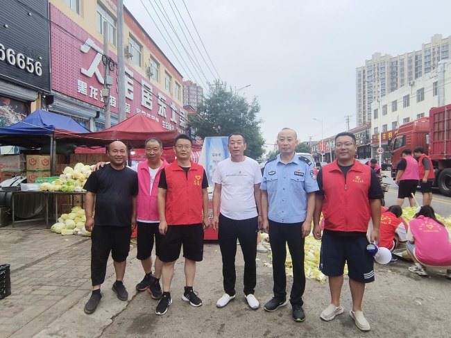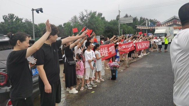 組織部分群眾到涿州南高速口歡送支援涿州救援隊的救援勇士們和迎接指引各地支援捐贈物資人員和車輛!